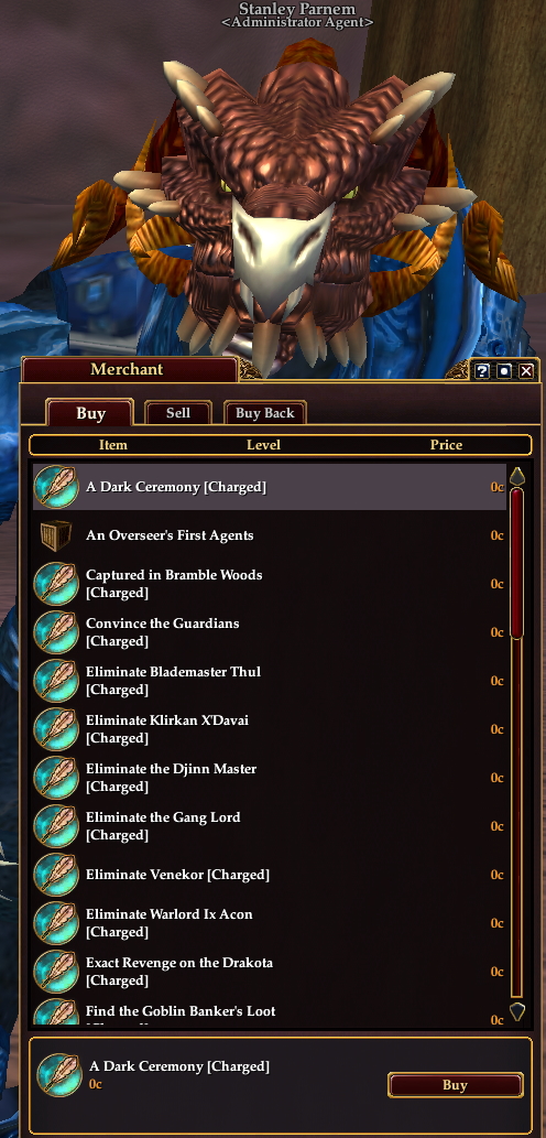 The Overseer system allows you to recruit agents and send them on adventures to obtain rewards for you. It's nice to be the boss! The Overseer system is available to All Access members, or if you purchased the Blood of Luclin expansion you will retain a limited access even if your membership lapses. If you are new to the Overseer system and want to progress naturally, you can obtain the starter pack "An Overseer's First Agents" from the Administrator Agent, Stanley Parnem, located in Freeport and the Qeynos Province District. Unpacking the starter pack will walk you through the basics of the system.