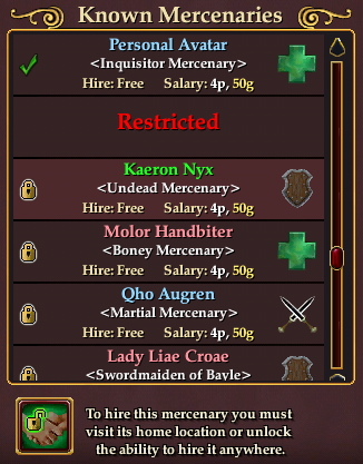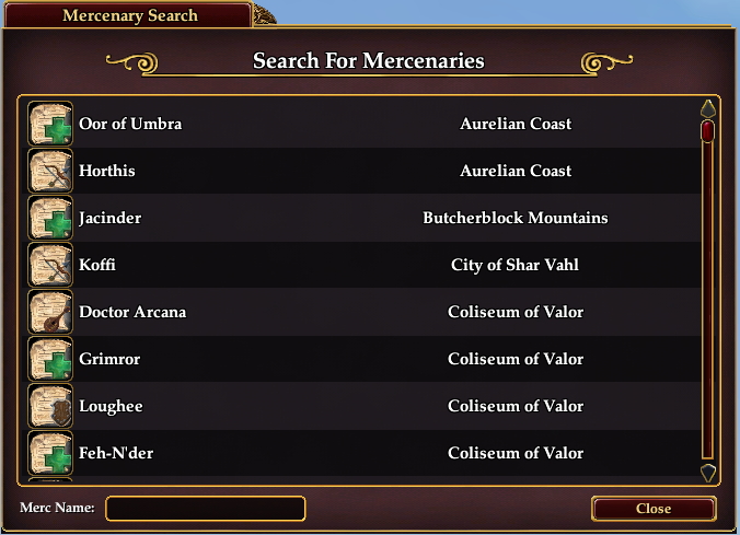 If you are like many of us, you enjoy expanding your stable of mercenaries, and sometimes it can get a bit overwhelming to remember where exactly a particular mercenary is located. Thankfully, now you don't have to! On the top right of the mercenary window, you will find a Search Mercenaries button, which will bring up a handy list of all mercenaries and where they are located.