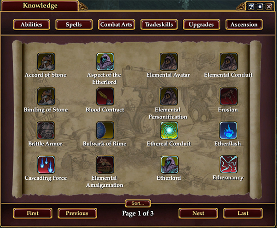Note that many of the abilities in the above knowledge book are greyed out because they are from an ascension class that is not currently active.