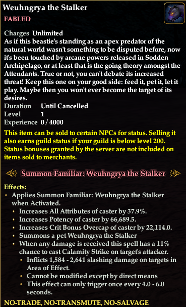 - 1 Consumables Crate with a chance at Weuhngrya the Stalker Familiar and Familiar Infusion