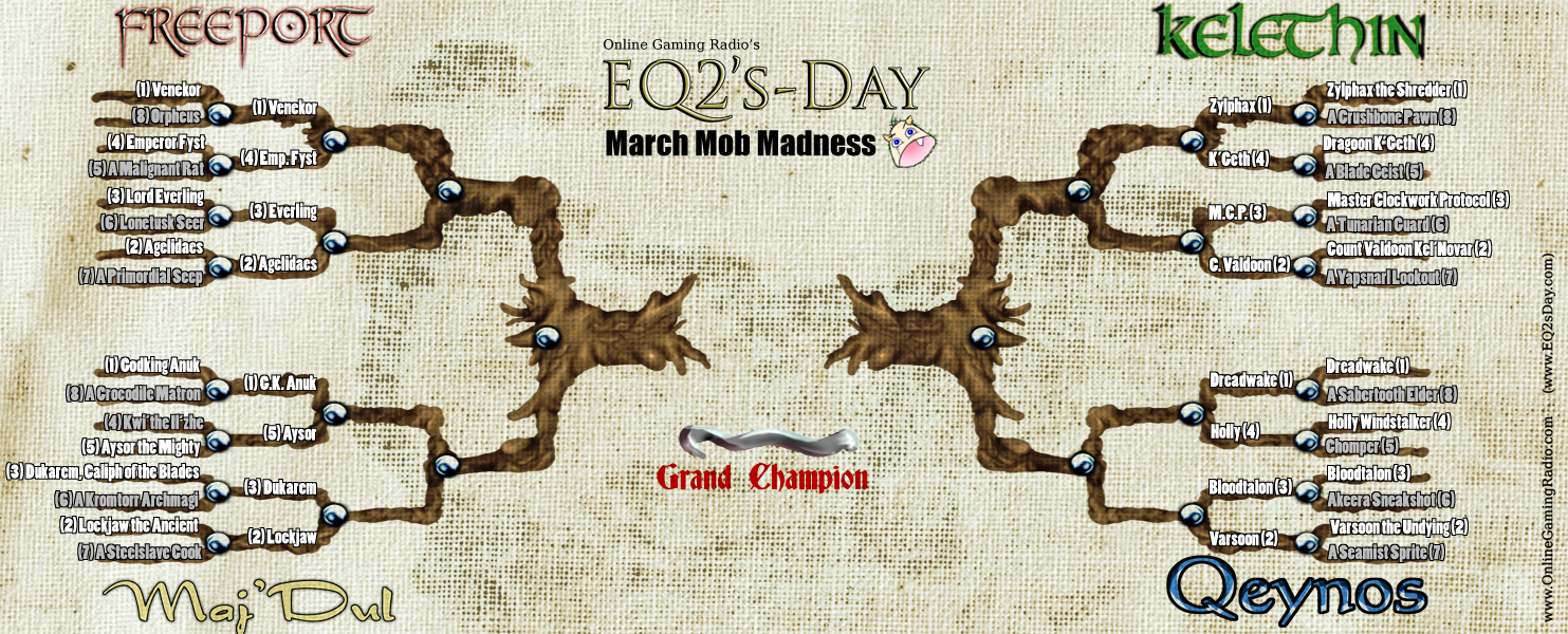 March Mob Madness' bracket and contest. Monsters from different parts of Norrath are paired up in a fight for your approval each and every week. As the votes come in the winners move forward to the next round, with the end result being a grand champion mob will be chosen as the ultimate winner in the last contest round.